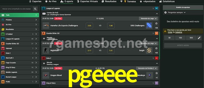 O pgeeee oferece uma grande seleção de opções de apostas em e-sports com probabilidades competitivas